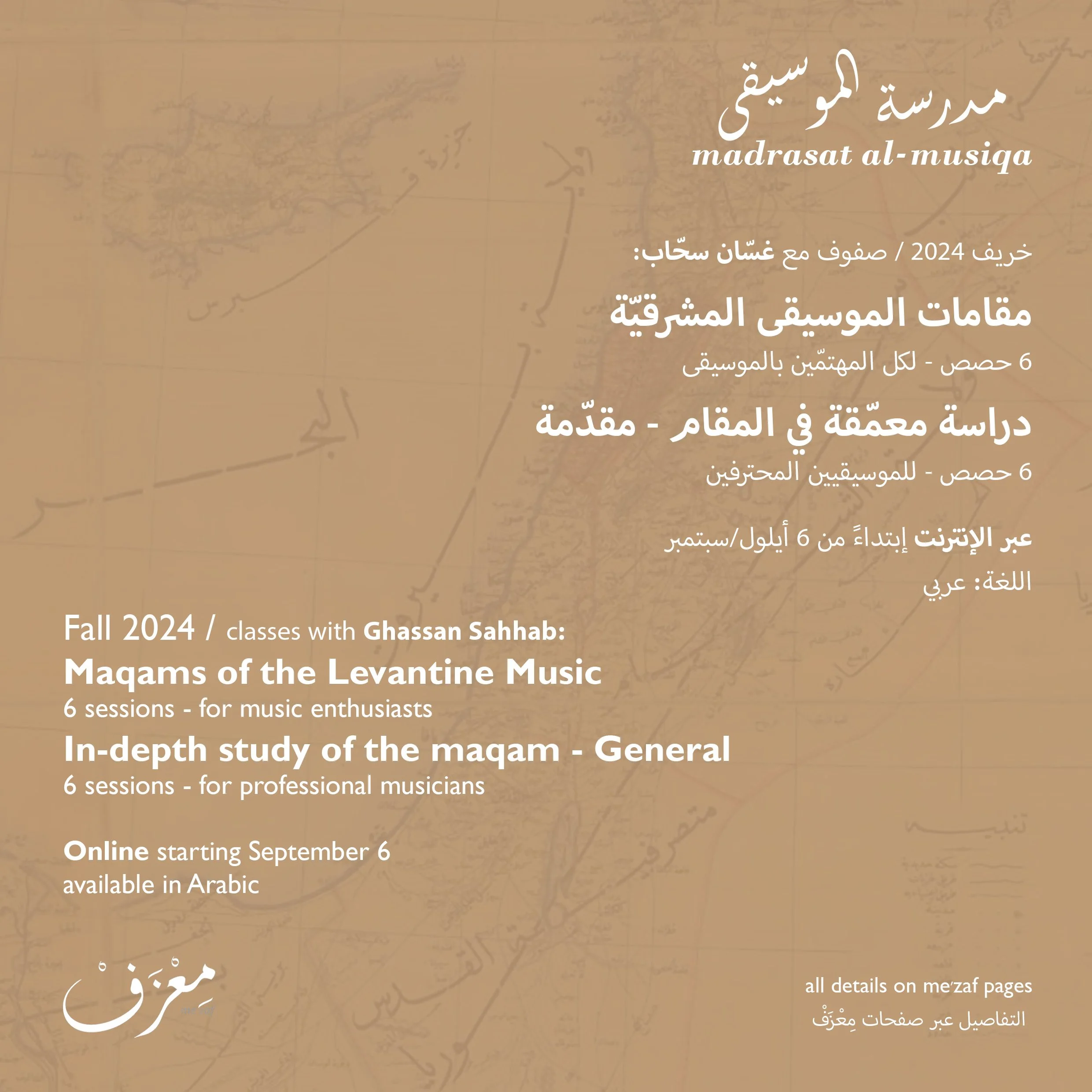 This class is dedicated to everyone who’s interested in Levantine music and the cultural and technological changes in Bilad Ash-sham. It doesn’t require previous knowledge in music or music performance.
